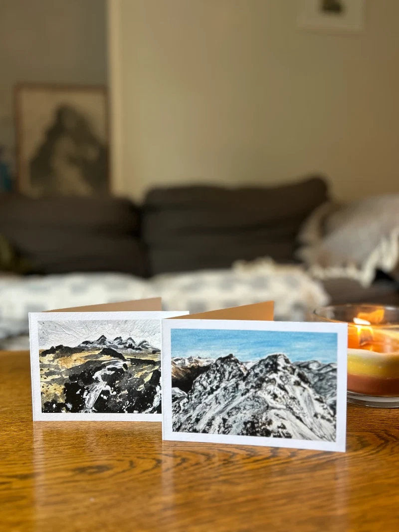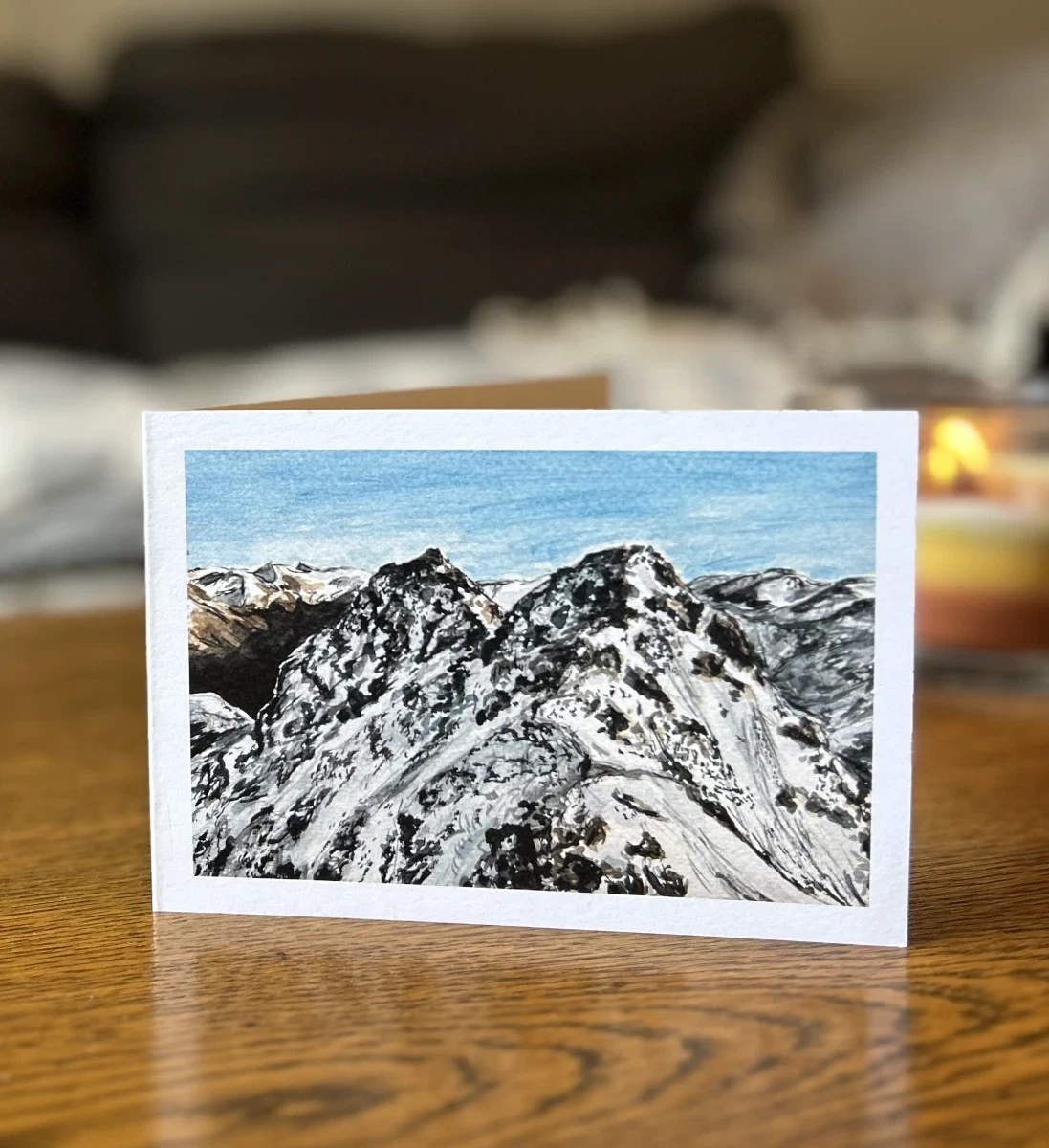 The Forcan Ridge in it's winter coat, painted in watercolour, printed on textured matt 324gsm card.